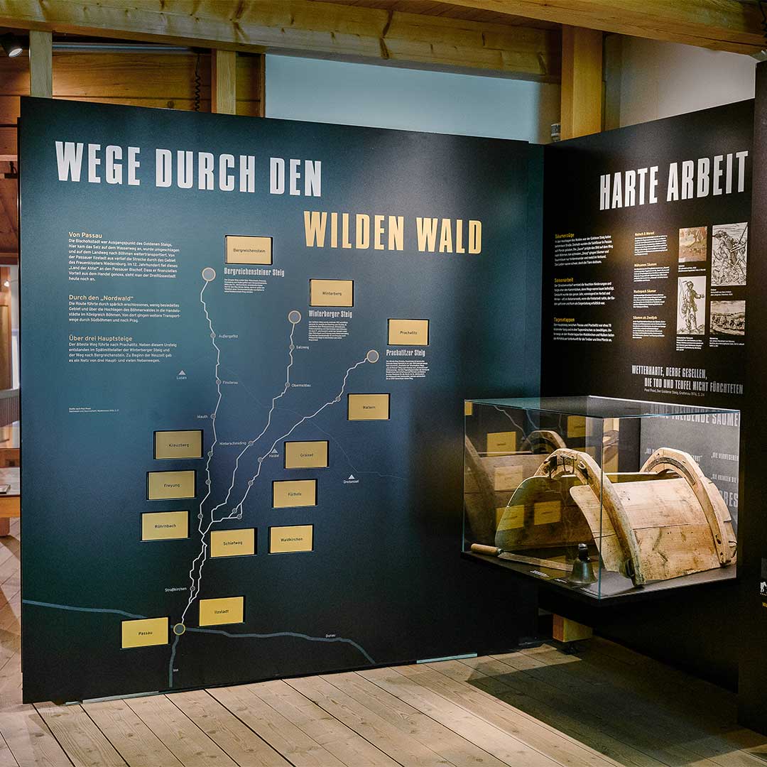 Der Goldene Steig ist namensgebend für das Museum, denn es dokumentiert die Geschichte des Salzhandels zwischen Bayern und Böhmen. Der Weg des „Weißen Goldes“ führte auf dem verkehrsreichsten mittelalterlichen Saumhandelsweg Süddeutschlands auch durch Waldkirchen. Für die Besucher gibt es viel zu entdecken: