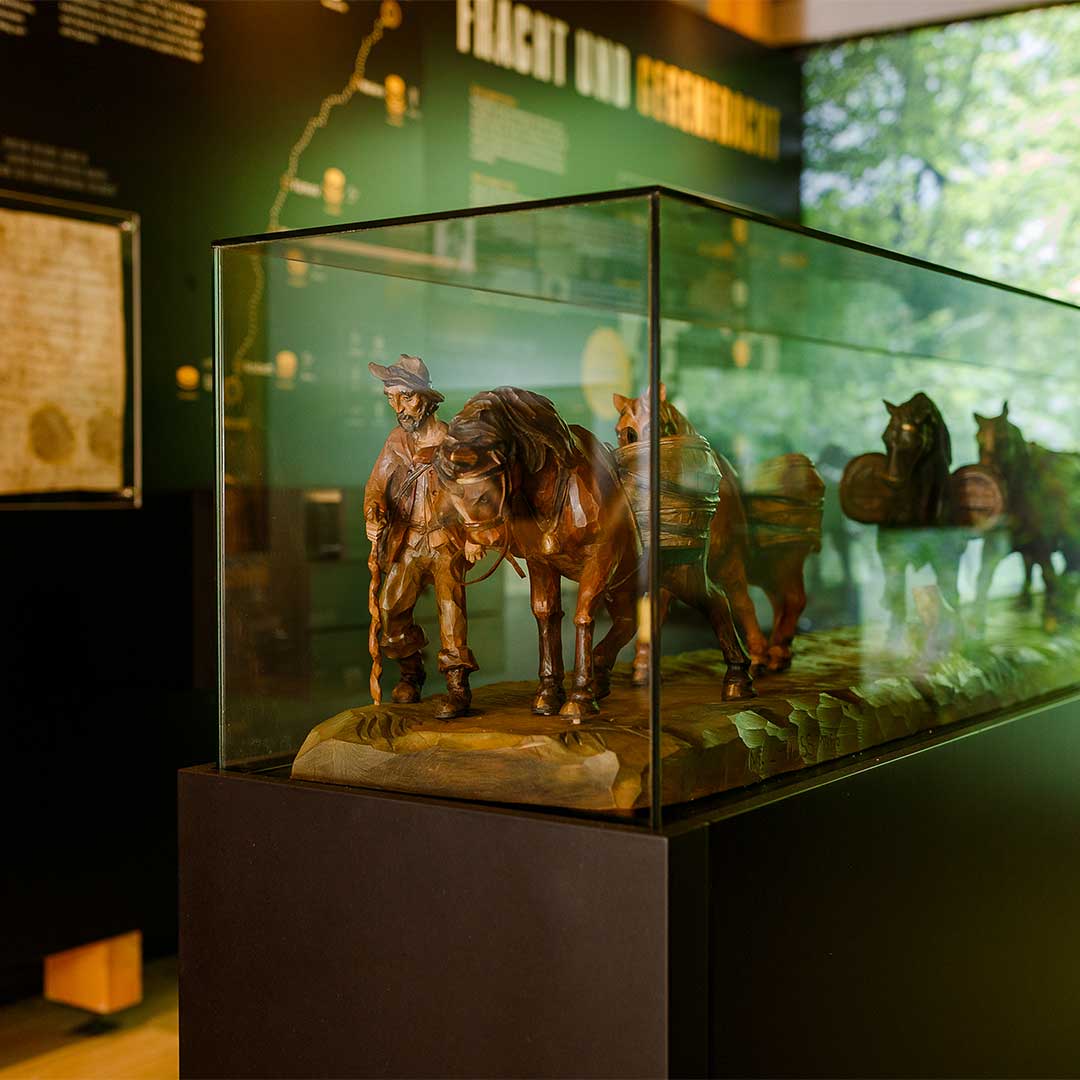 Folgen Sie dem Weg des Salzes – von der Salzgewinnung in den Alpen, über den Schiffstransport nach Passau, bis zum Weg der Saumpferde durch den Wald nach Böhmen.