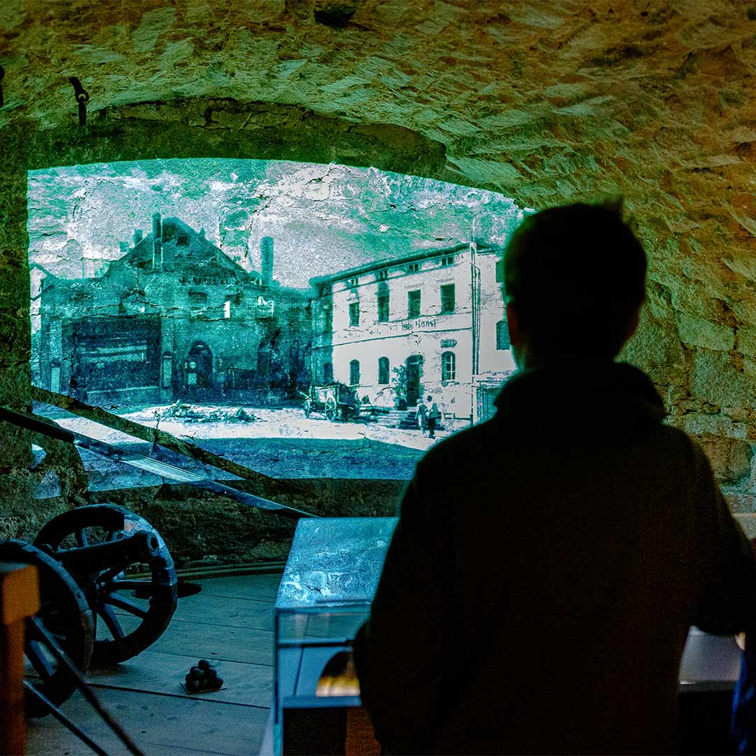 Versinken Sie in der Atmosphäre der verheerenden Marktbrände, lernen Sie am historischen Stadtmodell die Funktion alter Anwesen kennen und blättern Sie im Fotoalbum. Lauschen Sie den Gesprächen und Erlebnissen damaliger Bürger: Bierbrauer, Nachtwächter, Wundarzt, fromme Bürgersfrau und Gendarm.